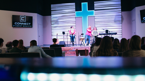 On Sunday mornings we have 4 Life Groups for students (9:30am). These groups include High School Boys, High School Girls, Middle School Boys, and Middle School Girls. These classes meet on the 3rd floor in the Connect space. After Life Groups students join their families for the 10:30 am worship service in the sanctuary on the main floor. On Wednesday nights students 6th-12th grade gather together at 6:30 for a time of fun, food, small groups and student worship. Watch the video as our student ministry director, Levi Bly, explains more about it and gives you a tour of our student spaces.